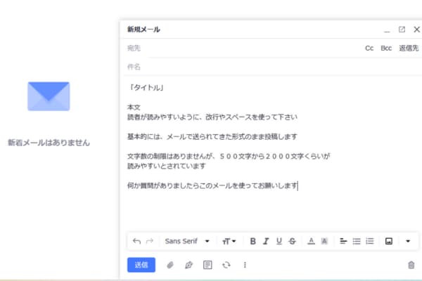 投稿は「note担当:神楽坂」のメールに返信する形で行います