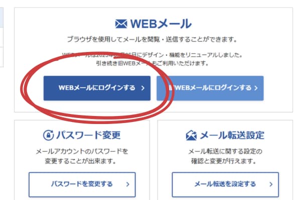 ③赤丸の「WEBメールにログインする」を押して下さい