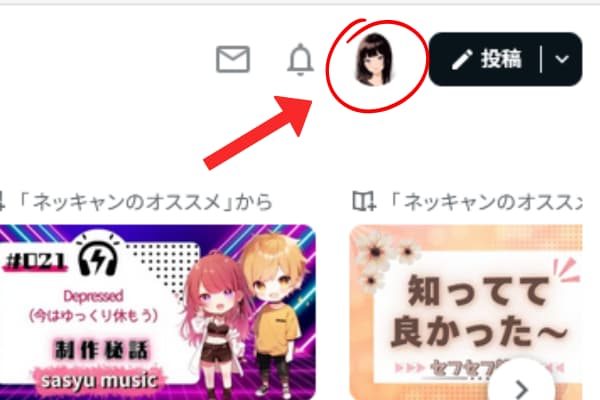 ④右上の顔アイコンを押すとクリエイターページなどご自分の情報が見れます